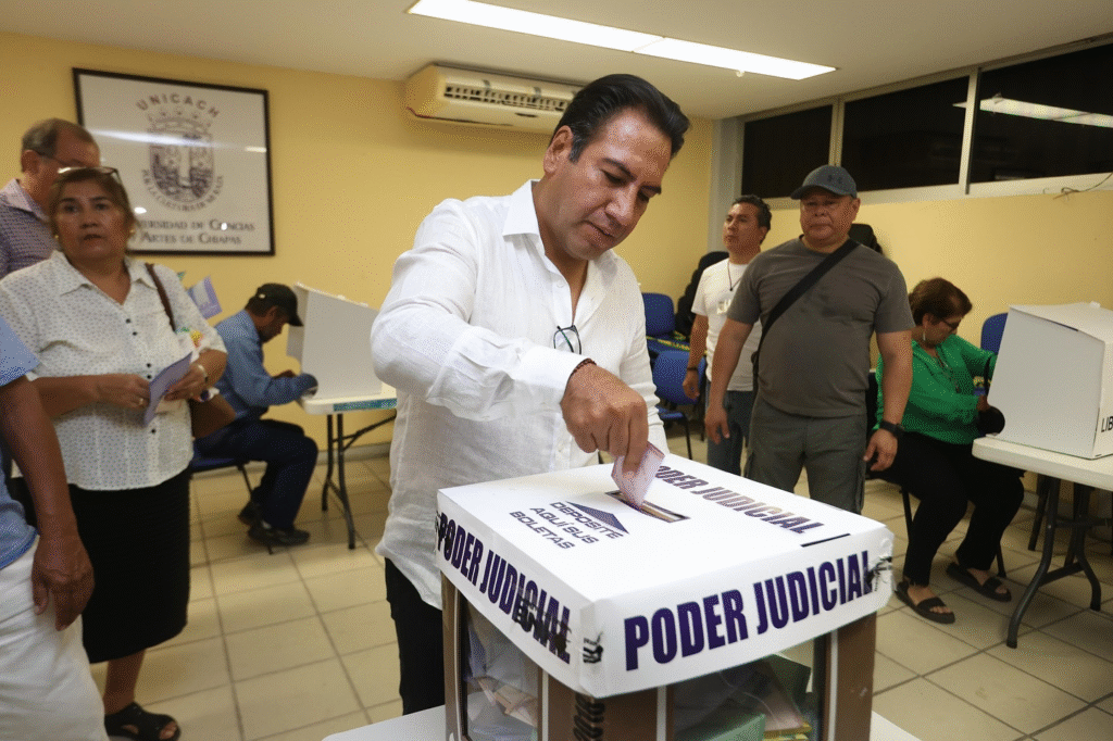 El gobernador de Chiapas, Eduardo Ramírez Aguilar, emitió este domingo su voto en la primera elección del Poder Judicial, un hecho histórico que marca un parteaguas en la vida democrática del país. Lo hizo en la casilla especial instalada en la Universidad de Ciencias y Artes de Chiapas (Unicach), sumándose al ejercicio ciudadano que no se realizaba desde hace más de 150 años.