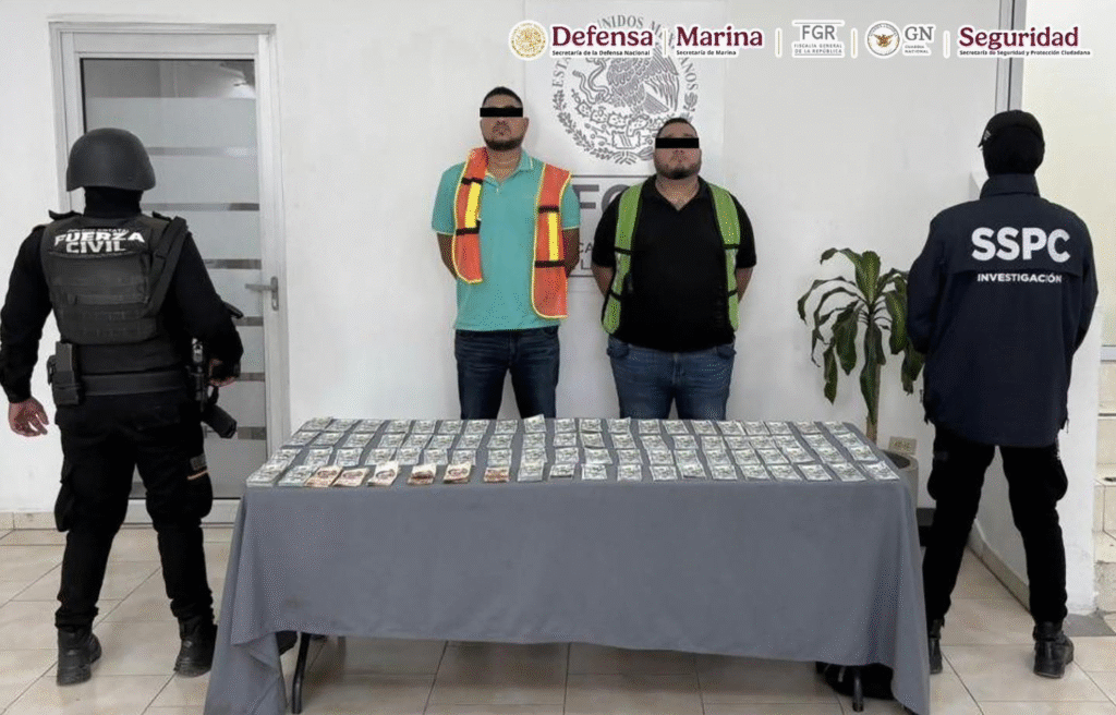 Entre los detenidos se encuentra José “N”, quien cuenta con una orden de aprehensión vigente en los Estados Unidos. Su captura se realizó junto con otro individuo, y durante el operativo se les aseguraron 100 mil dólares en efectivo.