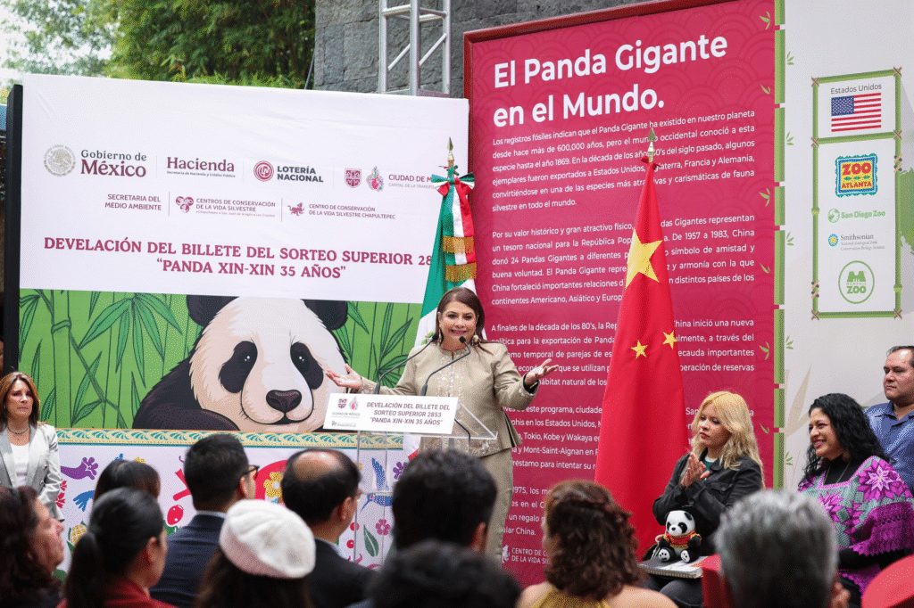 Al tomar la palabra, Olivia Salomón Vibaldo, directora general de la Lotería Nacional, señaló que con la emisión de este billete, la institución rinde homenaje a la panda Xin Xin, que cumple 35 años de vida en cautiverio en el zoológico de Chapultepec, tiempo que ha simbolizado resiliencia, ternura y memoria, así como la amistad entre México y China.