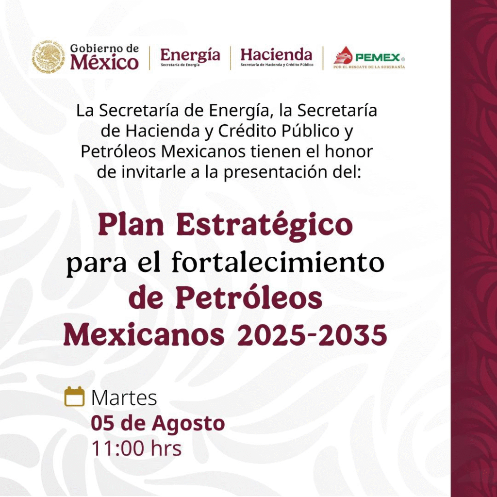Petróleos Mexicanos (Pemex) presentará este martes su Plan Estratégico para el Fortalecimiento de Pemex 2025–2035, una hoja de ruta que delineará las acciones a seguir durante la próxima década para consolidar la autosuficiencia energética y la soberanía nacional en el sector petrolero.