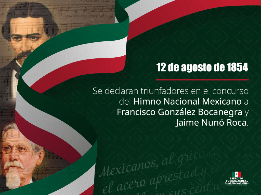 La Secretaría de la Defensa Nacional (SEDENA) recordó que el 12 de agosto de 1854 se dio a conocer oficialmente la letra y música del Himno Nacional Mexicano, uno de los símbolos patrios más representativos de la identidad nacional.