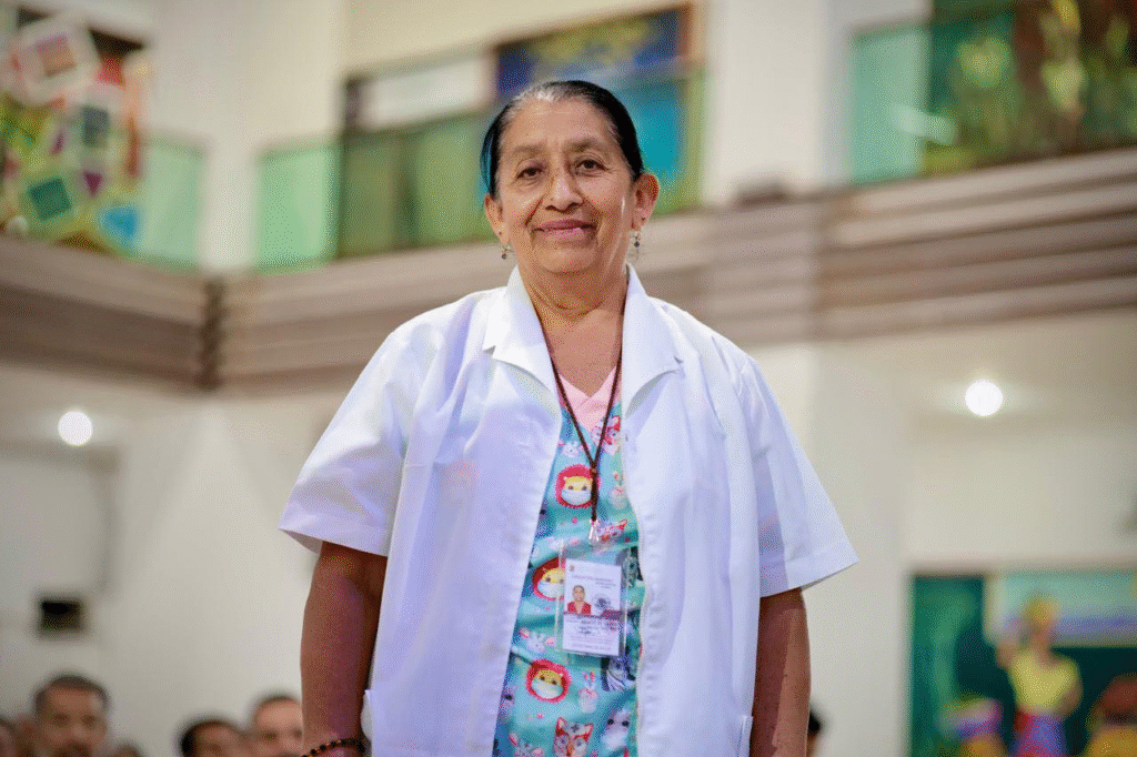 Durante la ceremonia, se destacó el papel de Edina Santos como guardiana de la partería tradicional, práctica que no solo representa un conocimiento médico-cultural heredado de generación en generación, sino también un acto de servicio y compromiso comunitario con las mujeres y familias chiapanecas.