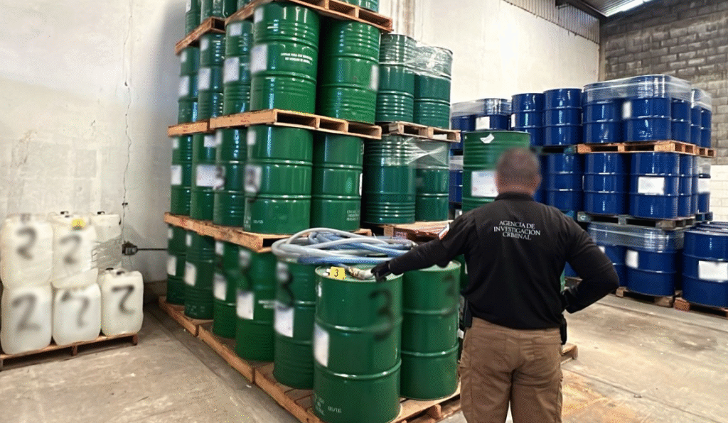 En la primera acción, bajo la conducción del Ministerio Público Federal (MPF), adscrito a la Fiscalía Federal en el Estado de Sinaloa, elementos de la Policía Federal Ministerial (PFM), de la AIC, ejecutaron un cateo en la colonia Barrancos, en Culiacán, Sinaloa, donde aseguraron alrededor de 120 mil litros de sustancias con las características de la acetona, tolueno, sosa cáustica, ácido clorhídrico, ácido sulfúrico, etanol, acetato de plomo, alcohol bencílico, entre otras. Además de un tractocamión, un remolque, un montacarga y objetos del delito.