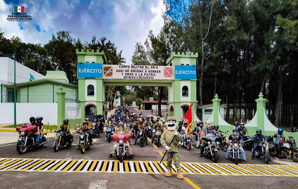 Integrantes del Ejército Mexicano, adscritos a la 26 Zona Militar, participaron en la Rodada Motociclista realizada en esta localidad, compartiendo su pasión por el motociclismo en un ambiente de sana convivencia.