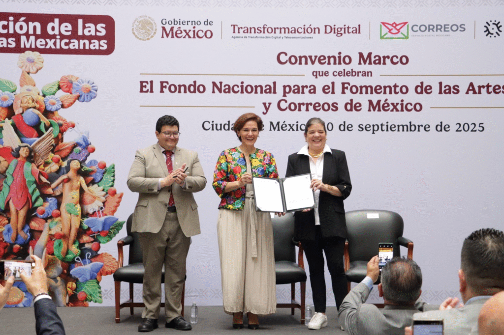 La Financiera para el Bienestar (Finabien) felicitó a las directoras de Correos de México, Violeta Abreu González, y del Fondo Nacional para el Fomento de las Artesanías (Fonart), Sonya Santos Garza, por la firma de un convenio de colaboración que permitirá abrir nuevas oportunidades para miles de artesanas y artesanos del país.