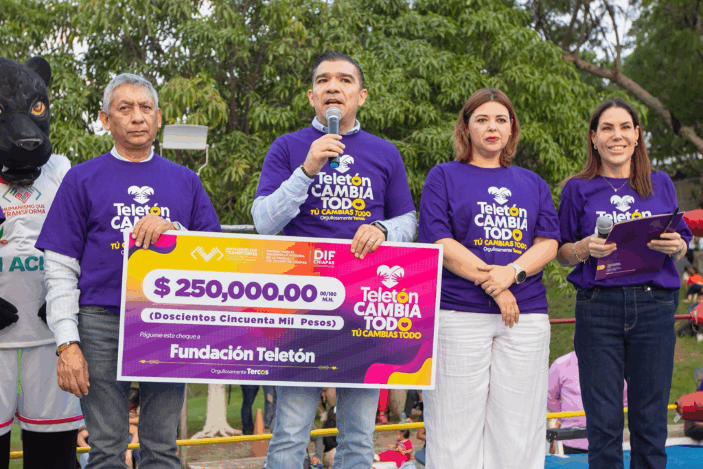 El diputado Luis Ignacio Avendaño Bermúdez asistió en representación del gobernador Eduardo Ramírez Aguilar al evento nacional Teletón 2025, realizado en el Centro de Rehabilitación e Inclusión Infantil Teletón (CRIT) Chiapas y transmitido simultáneamente en todo el país. Durante la ceremonia, el Gobierno del Estado realizó la entrega de un donativo en apoyo a esta noble causa.