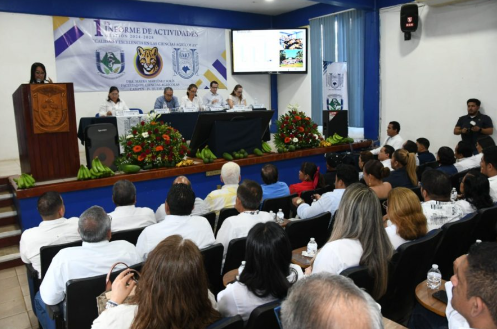 Huehuetán, Chiapas. – Rindió su 1er. Informe de Actividades, Gestión 2024-2028, la directora de la Facultad de Ciencias Agrícolas, Campus IV, de la Benemérita Universidad Autónoma de Chiapas, Mayra Martínez Solís, ante los integrantes de la Junta de Gobierno, la comunidad docente y estudiantil de esta unidad académica.