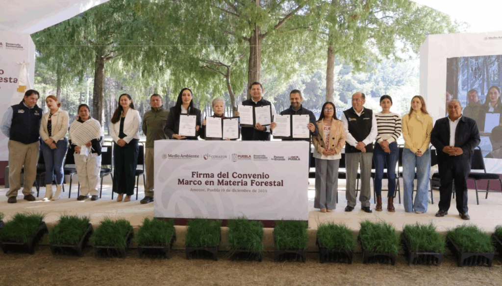El estado de Puebla fortalecerá su vocación ambiental y turística con la firma de un convenio en materia forestal entre el gobernador Alejandro Armenta y la secretaria de Medio Ambiente y Recursos Naturales, Alicia Bárcena. El acuerdo contempla la protección, restauración y aprovechamiento sustentable de 1.5 millones de hectáreas de vegetación forestal, que representan el 46 por ciento del territorio estatal.