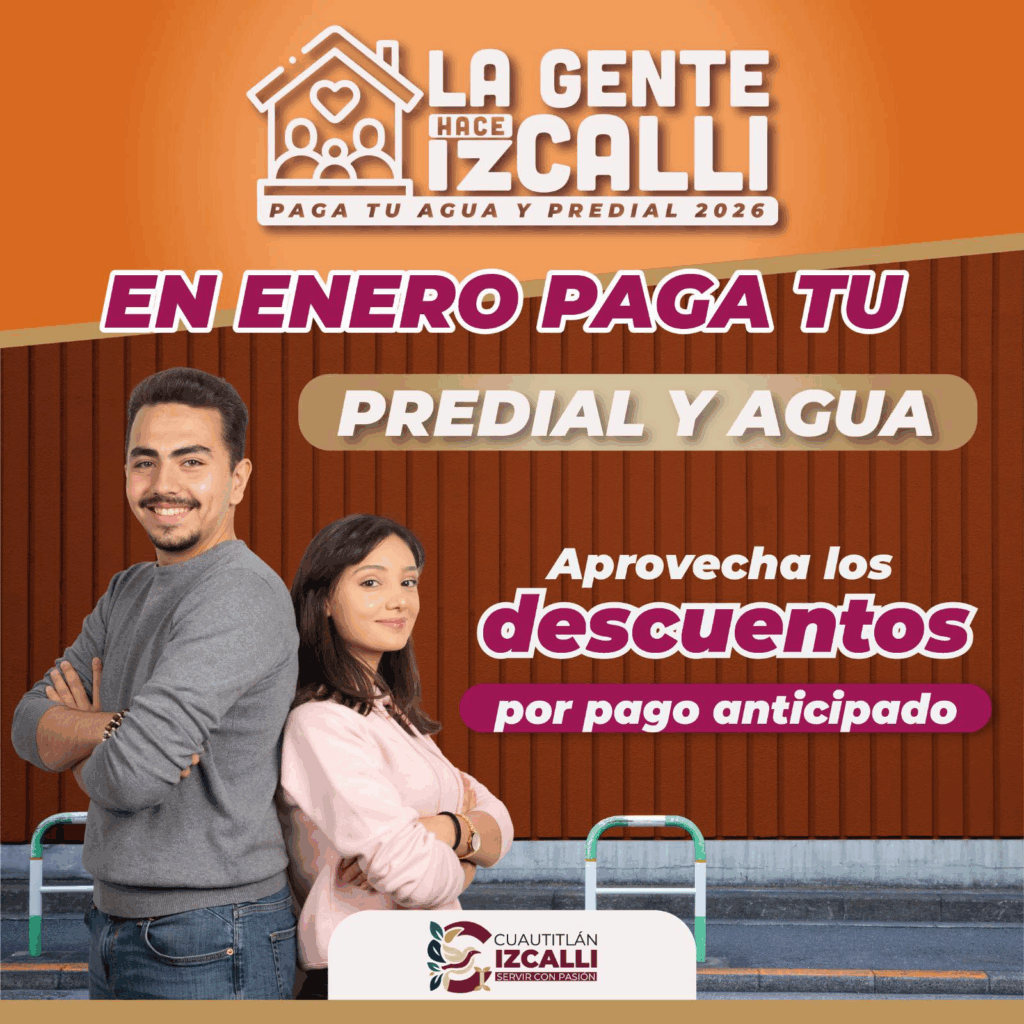Con el objetivo de fomentar la cultura del cumplimiento y proteger el patrimonio familiar, el Gobierno Municipal de Cuautitlán Izcalli exhortó a la ciudadanía a mantenerse al corriente en el pago de los servicios de agua potable y predial, e iniciar el año sin rezagos.