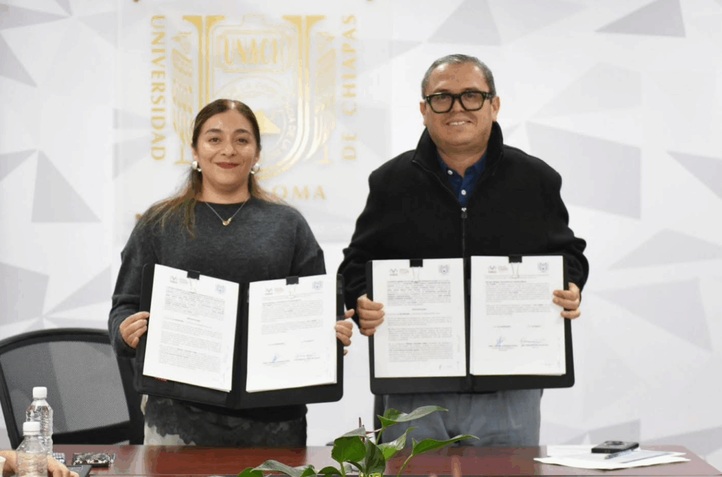 Tuxtla Gutiérrez, Chiapas.- Con la finalidad de llevar a cabo la creación e implementación del Laboratorio de Urbanismo y Movilidad con Perspectiva de Género, el rector de la Universidad Autónoma de Chiapas, Oswaldo Chacón Rojas y la secretaria de Movilidad y Transporte del Estado de Chiapas,  Albania González Pólito, firmaron un Convenio General y Convenio Específico de Colaboración Interinstitucional.