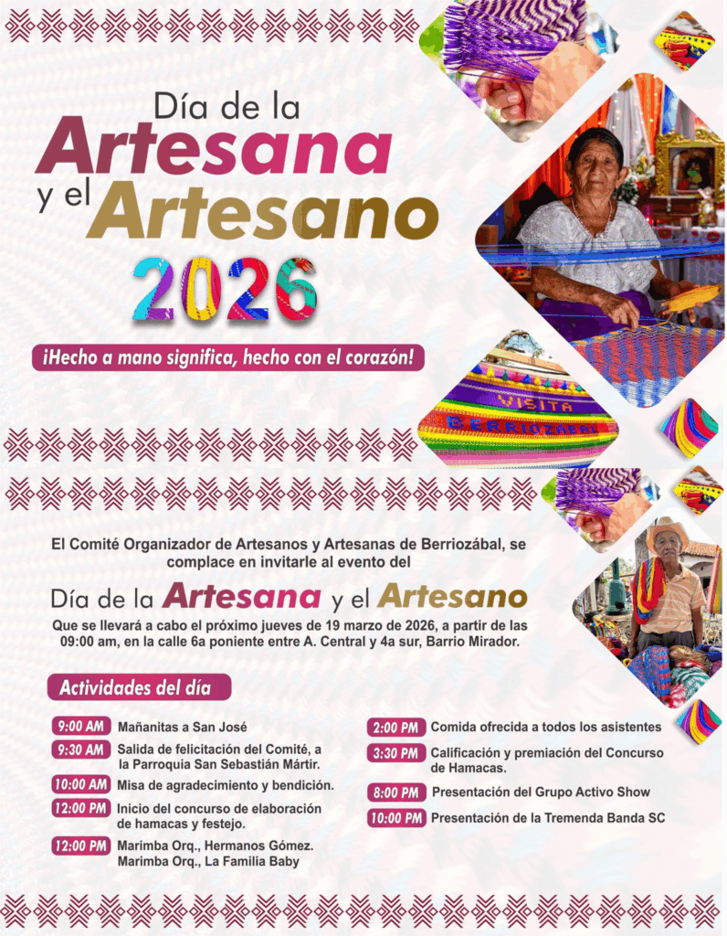 El Gobierno Municipal de Berriozábal, en coordinación con el Comité Organizador de Artesanos y Artesanas, invitó a la ciudadanía a participar en el festejo por el Día del Artesano y la Artesana 2026, con el propósito de reconocer el trabajo y la tradición de quienes elaboran piezas hechas a mano.