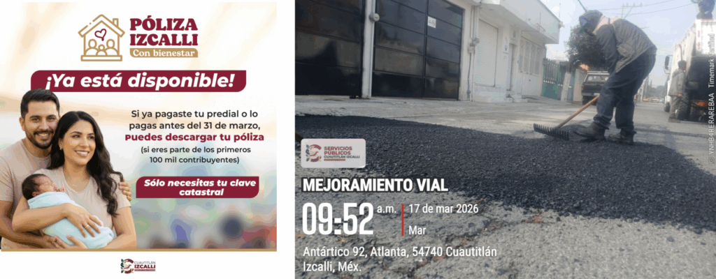 El Gobierno Municipal de Cuautitlán Izcalli, a través de la Dirección de Servicios Públicos, realizó trabajos de bacheo en diversas colonias del municipio con el objetivo de mejorar las condiciones de las vialidades y garantizar traslados más seguros para la población.