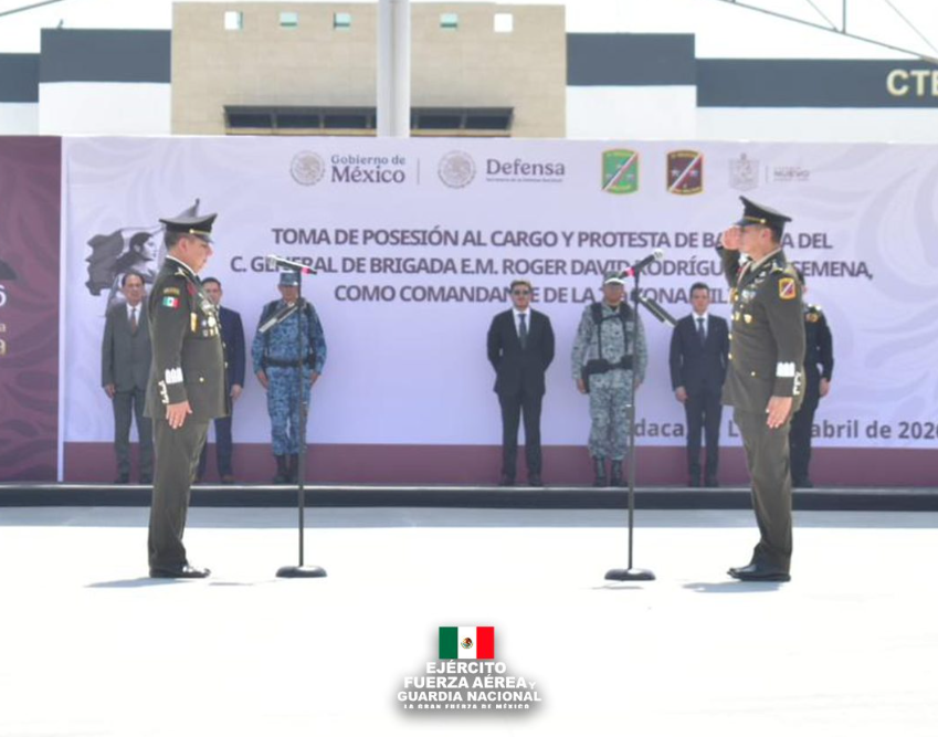 La Secretaría de la Defensa Nacional informó que el pasado 1 de abril de 2026 se llevó a cabo la ceremonia de toma de protesta, posesión al cargo y protesta de bandera del nuevo comandante de la 7/a Zona Militar, en instalaciones de la Coordinación Estatal de la Guardia Nacional en Apodaca, Nuevo León.
