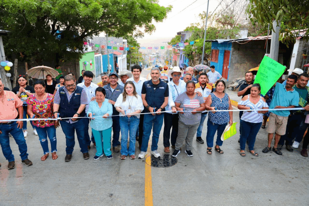 El presidente municipal Ángel Torres, junto a su esposa Mercedes Ortiz, encabezó la inauguración de 310 metros lineales de pavimentación en la avenida Joaquín Miguel Gutiérrez, entre las calles González Garrido y Río Grijalva, en la colonia La Reliquia, como parte del programa Calles Felices.